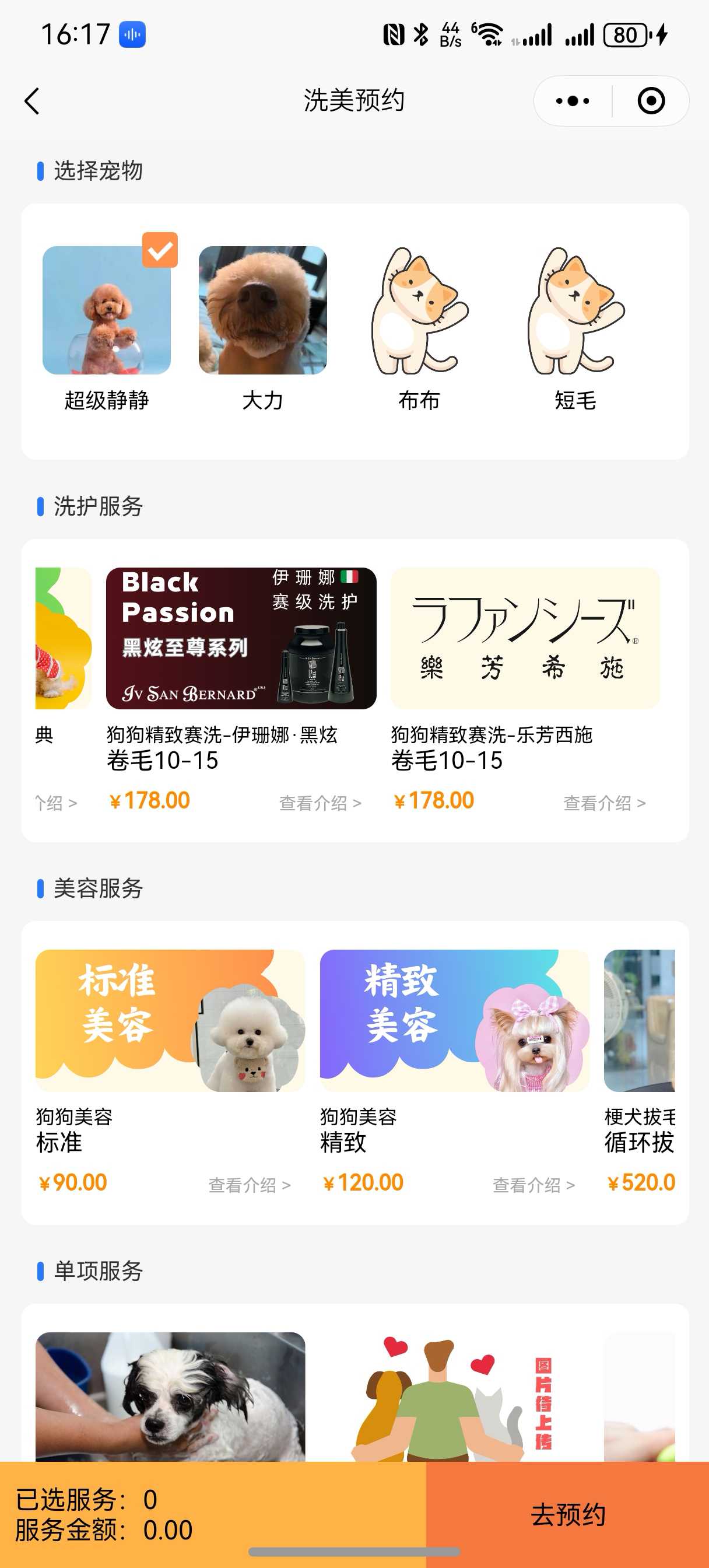 【服务类型】仅限:洗澡、美容、 单项、上门、寄养