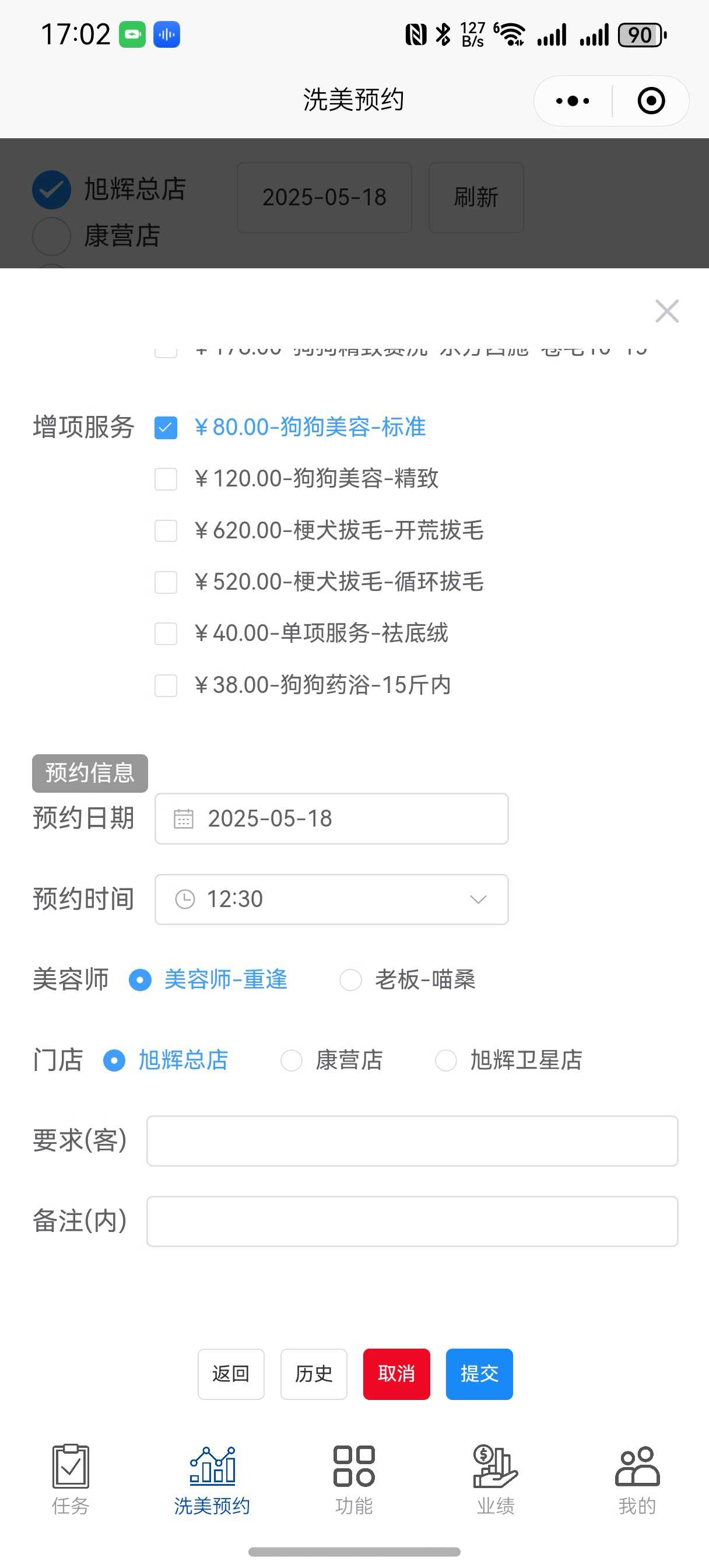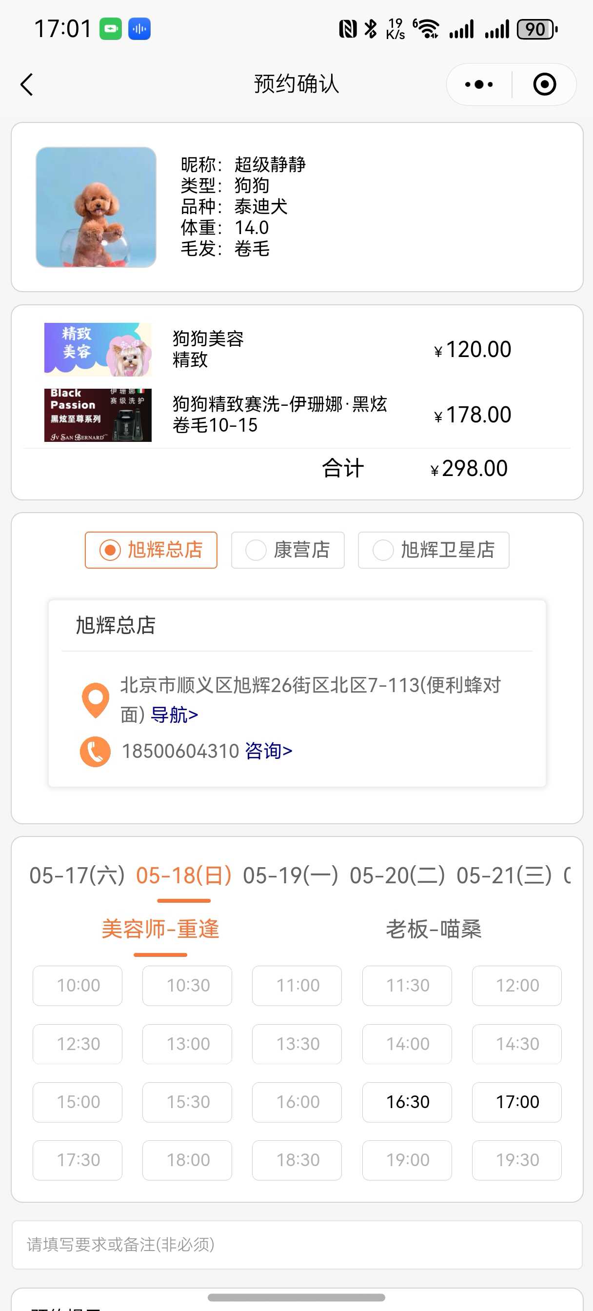 ⭐️美容师的日程安排一直是宠物店的一大难题。为了避免顾客扎堆到店,可以使用预约功能。